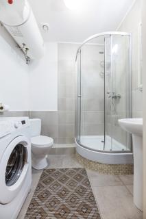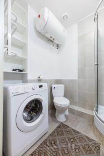 Ще в квартирі вся побутова техніка, включаючи фен і кондиціонер.чиста постіль з професійної пральні і рушники (термообробка при температурі 150 градусів),необхідний посуд, мило, туалетний папір.