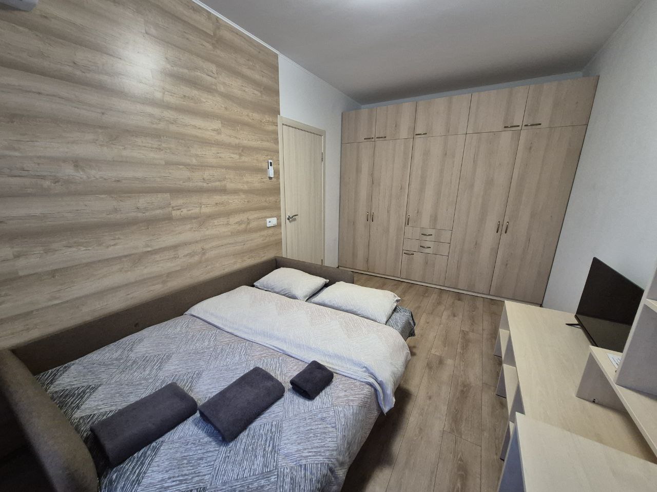 Ще в квартирі вся побутова техніка, включаючи фен і кондиціонер.чиста постіль з професійної пральні і рушники (термообробка при температурі 150 градусів),необхідний посуд, мило, туалетний папір.